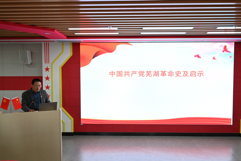 随后,我院徐东辉副教授为大家作了《芜湖革命史》的专题报告。徐东辉从大革命时期、土地革命时期、抗日战争时期及解放战争时期带我们重温了江城芜湖的革命史,并勉励大家要坚定理想信念,矢志不渝为实现中华民族伟大复兴而奋斗。